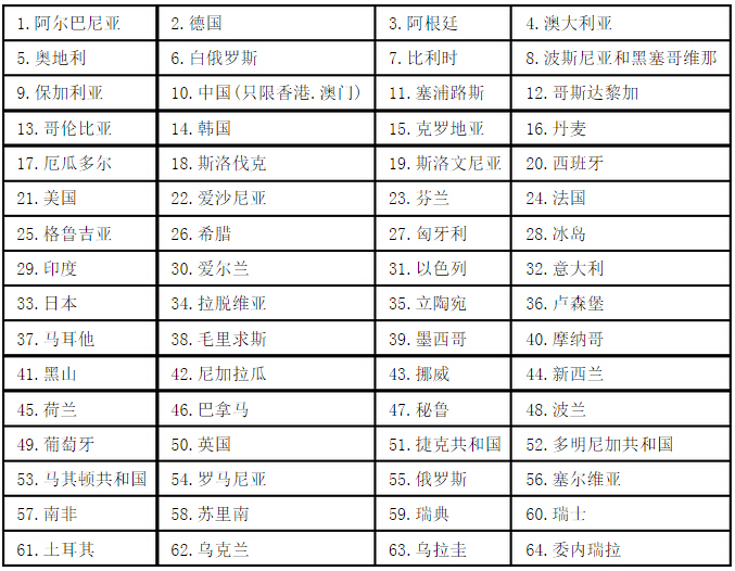 目前海牙公約認證成員國共有106個: