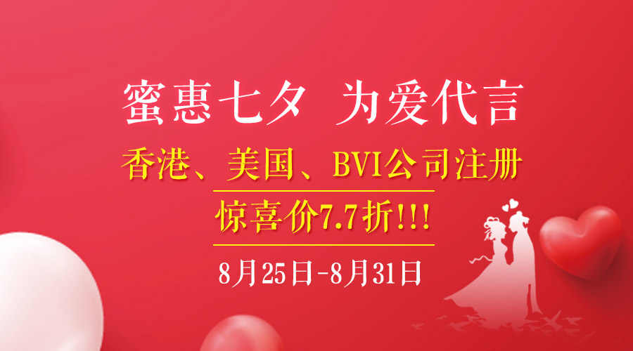 【蜜惠七夕 好禮相送】晉昇中國(guó)香港、美國(guó)、BVI公司注冊(cè)有驚喜!