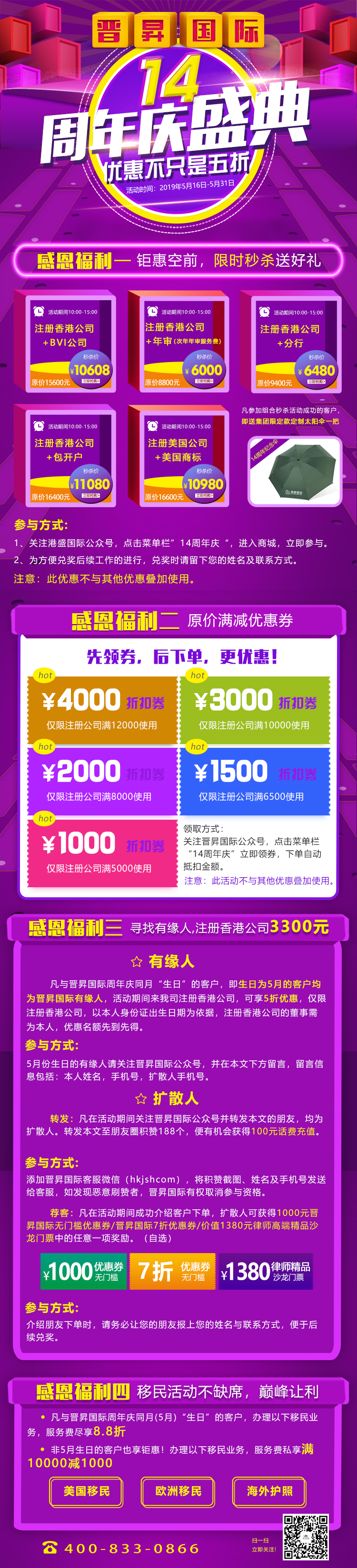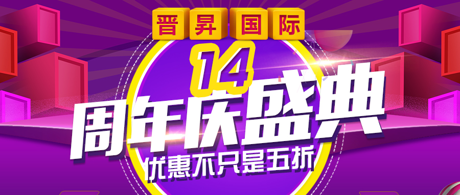 晉昇國際14周年慶典震撼來襲,四重福利齊放送!