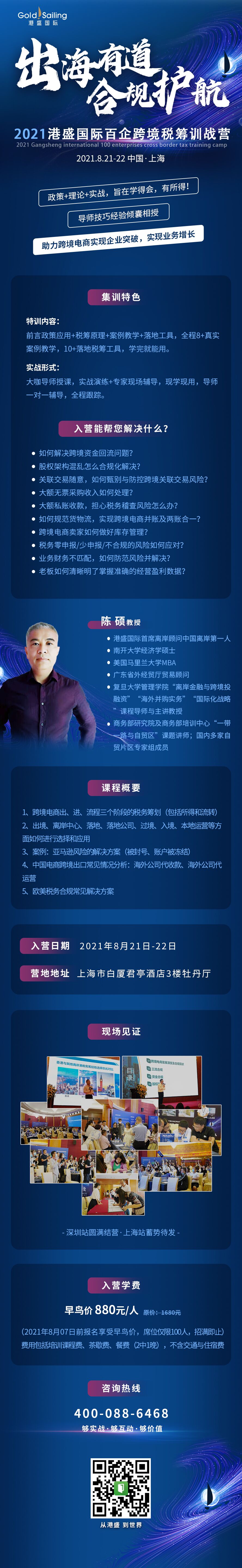 早鳥(niǎo)票預(yù)訂 | 2021港盛國(guó)際百企跨境稅籌訓(xùn)戰(zhàn)營(yíng)——上海站火熱報(bào)名中