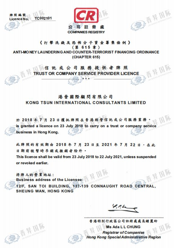 晉昇國際作為提供個性化離岸商務(wù)管理服務(wù)30年的離岸機(jī)構(gòu),已成功獲批中國香港秘書牌照!并始終堅持「以誠為本,客戶至上」的原則為企業(yè)實現(xiàn)商業(yè)夢想,領(lǐng)銜行業(yè)典范!