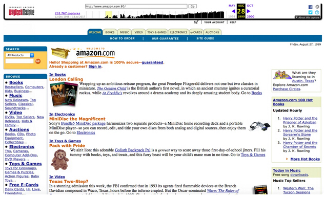 躲過生死劫后,亞馬遜簡化了網(wǎng)站的外觀,并加入了更多商品,家庭用品、嬰兒用品、美容用品,食品也處于測試階段,bookstore到everythingstore的雛形已經(jīng)出現(xiàn)。