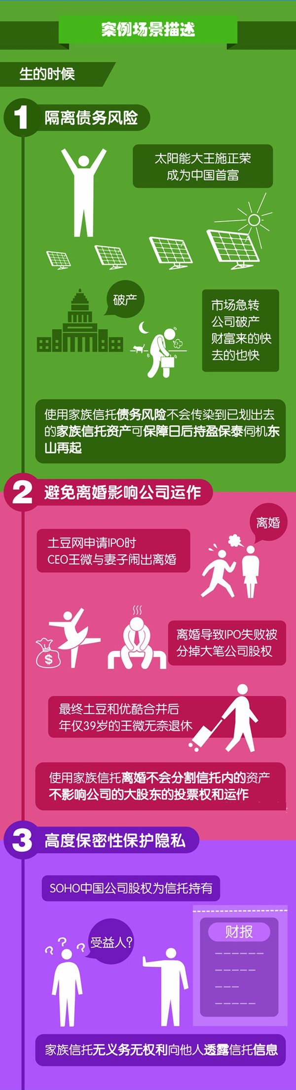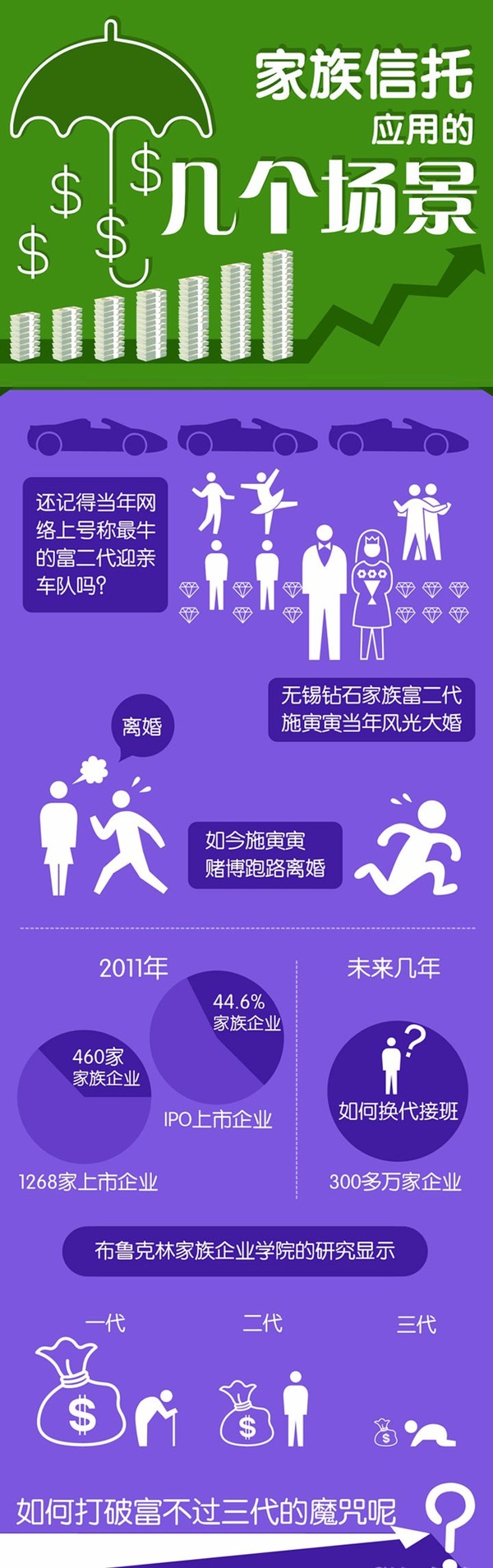 據(jù)調(diào)查統(tǒng)計,85%的企業(yè)主關心和擔心家族財富傳承問題。財富傳承的需求催生了我國家族信托業(yè)務的快速發(fā)展。家族信托在海外作為一種財富傳承和保護的重要工具,已經(jīng)有逾百年的發(fā)展歷史。想要充分看懂家族信托,只需一組圖片!