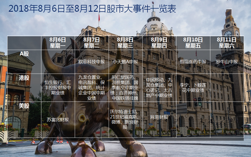 港股方面,“獨角獸”百濟神州和全球最大的電信鐵塔公司——中國鐵塔將于下周三在港交所掛牌上市。此外,中國移動、電訊盈科、匯豐控股等公司將披露中期業(yè)績。