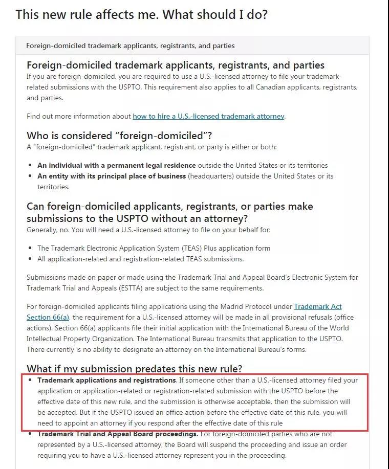 2019年8月3日前遞交的美國商標申請,如果不是由美 國執(zhí)業(yè)律師代理的,仍能夠提交。