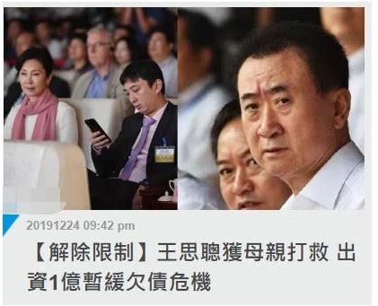 據(jù)說上述還債款項(xiàng)應(yīng)該是由王思聰自己想辦法籌措的,“萬達(dá)集團(tuán)與此沒有任何關(guān)系。”此外,也有港媒報(bào)道,稱是王思聰?shù)膵寢尶床贿^眼老公沒出手,自己拿了一億出來給兒子還債。但截至目前為止,王思聰還有1.1億元需要支付給嘉興璟字悌為,但這筆剩余款項(xiàng)支付期限尚未屆滿。