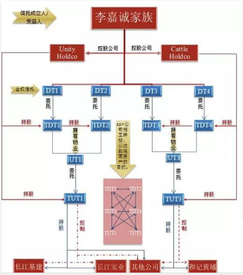 李嘉誠(chéng)設(shè)立了至少4個(gè)信托基金,分別持有旗下公司的股份,并對(duì)每個(gè)信托基金指定了受益人。