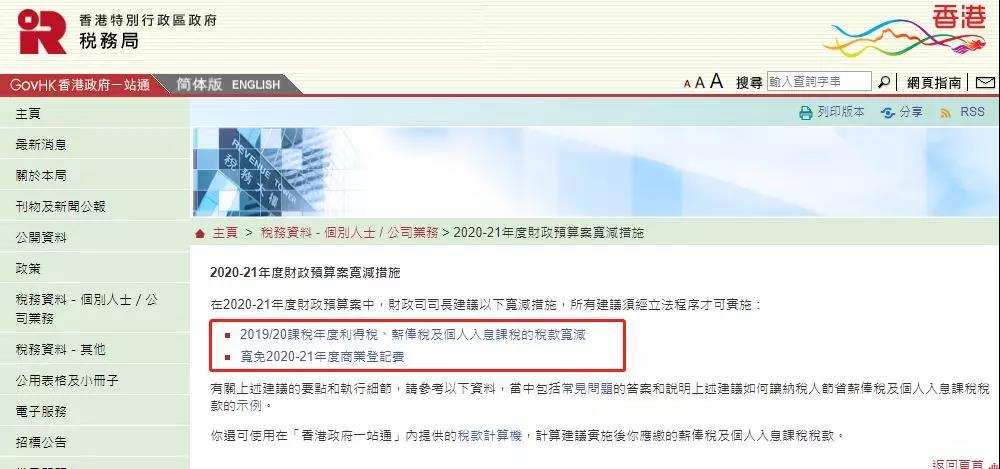 一次性寬減2019/20課稅年度百分之百的利得稅、薪俸稅及個人入息課稅,每宗個案以HKD20,000元為上限。具體細(xì)則如下: