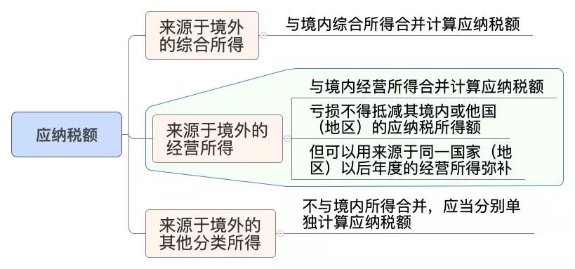 注:分類(lèi)所得是比例稅率,不用和境內(nèi)所得合并,綜合所得和經(jīng)營(yíng)所得是累進(jìn)稅率,應(yīng)把境內(nèi)外合并計(jì)算出一個(gè)整體的應(yīng)納稅額。